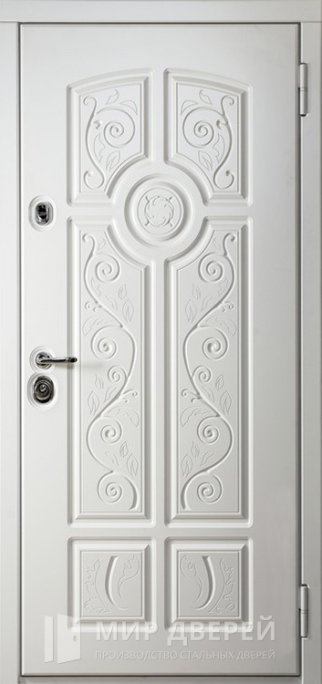 Элегантная отделка в светлых тонах делает эту модель особенно востребованной для современных интерьеров. Белый цвет и текстура дуба гармонично сочетаются с зеркалом, встроенным во внутреннюю панель, благодаря чему пространство визуально становится просторнее и светлее. Каркас из профильных труб с ребрами жесткости и листом стали толщиной 2 мм обеспечивает надежную защиту от внешних воздействий и долгий срок службы. Именно поэтому белая входная дверь в квартиру с шумоизоляцией №76 одинаково хорошо подходит как для жилых помещений, так и для офисов или частных домов. Отделка выполнена из МДФ с ПВХ покрытием, которое отличается стойкостью к влаге, повреждениям и сохраняет привлекательный вид даже при активной эксплуатации. Для герметичности используются два контура резинового уплотнителя, препятствующие попаданию сквозняков и пыли. По желанию дверь можно оснастить шумо- и теплоизоляцией, что сделает её ещё более комфортной в использовании, а также дополнить декоративными элементами или современными системами безопасности.