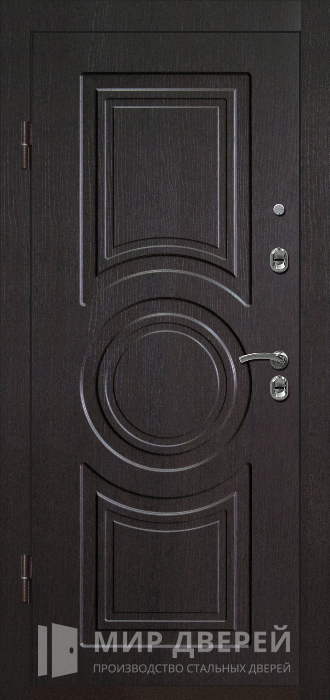 Утепленная входная дверь №44 предназначена для частных домов и коттеджей, где требуется высокий уровень теплоизоляции и безопасности. Дверь обладает стильным дизайном с внешней и внутренней отделкой из МДФ, представленной в темных и черных цветах, что придает ей современный и элегантный вид.