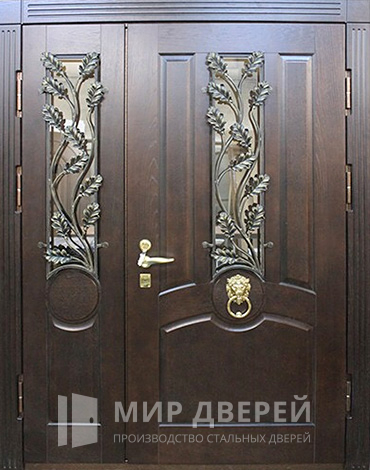 Парадная дверь с художественной ковкой №112 является выдающимся выбором для частного дома или коттеджа, где требуется сочетание безопасности, прочности и изысканного внешнего вида. Отделка из массива дуба как снаружи, так и изнутри, не только подчеркивает элегантность двери, но и гарантирует её устойчивость к воздействиям окружающей среды и долговечность.